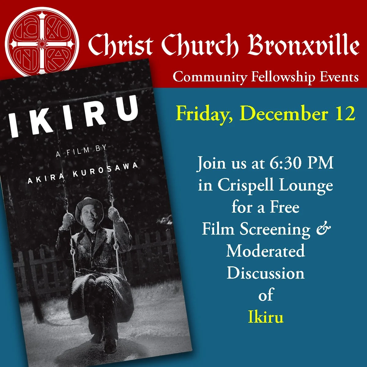 Join us for the second CCB Movie Night: Friday December 12!