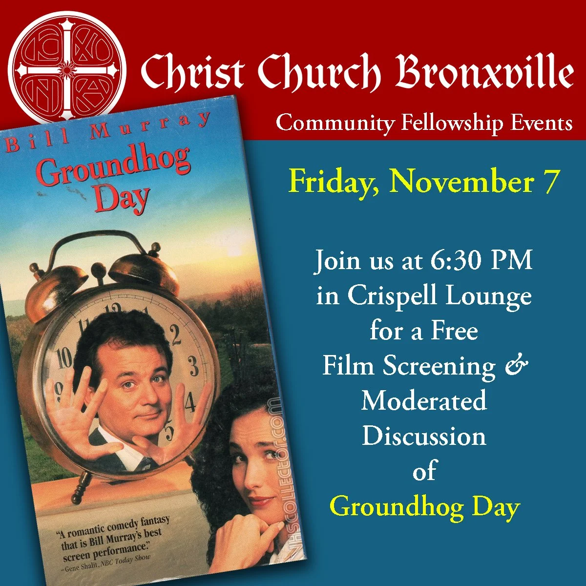 This classic 90s American fantasy romantic comedy starring Bill Murray, Andie MacDowell, and Chris Elliott, tells the story of a cynical television weatherman covering the annual Groundhog Day event in Punxsutawney, PA, who becomes trapped in a time loop, forcing him to relive February 2 again and again. Reviewers consider it to be one of the greatest comedy films ever made. Buddhist, Christian, and Jewish scholars have analyzed the film as a religious allegory. Join our group to laugh together and discuss the movie’s many compelling themes.